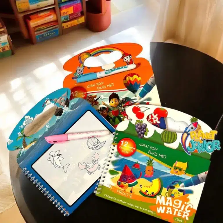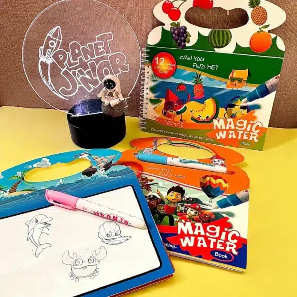 Let your child’s imagination splash into color with the Magic Water Book – a fun, mess-free, and reusable painting activity designed to engage young minds creatively and safely. Just fill the included water pen and watch as vibrant colors magically appear on the pages! Once dry, the images disappear, ready to be painted all over again. It’s the perfect alternative to screen time, offering hours of educational fun.